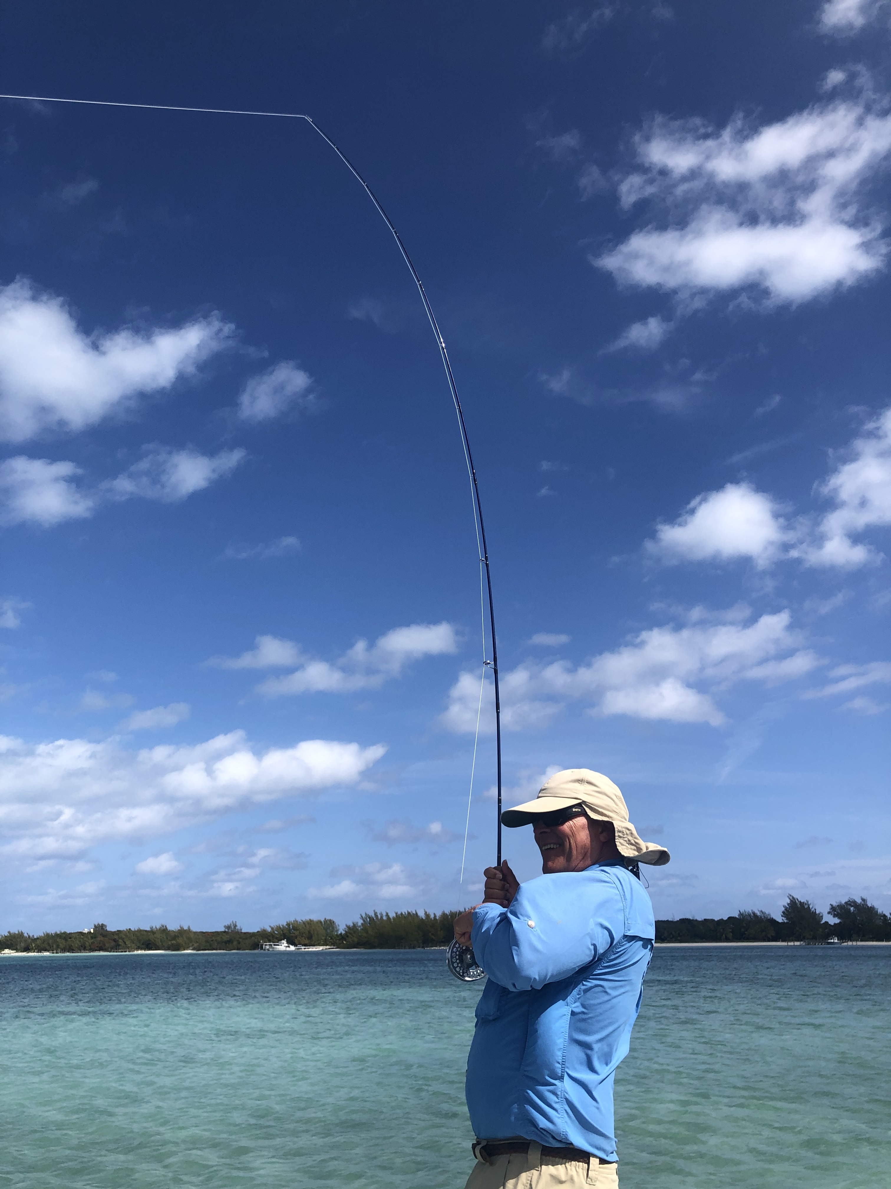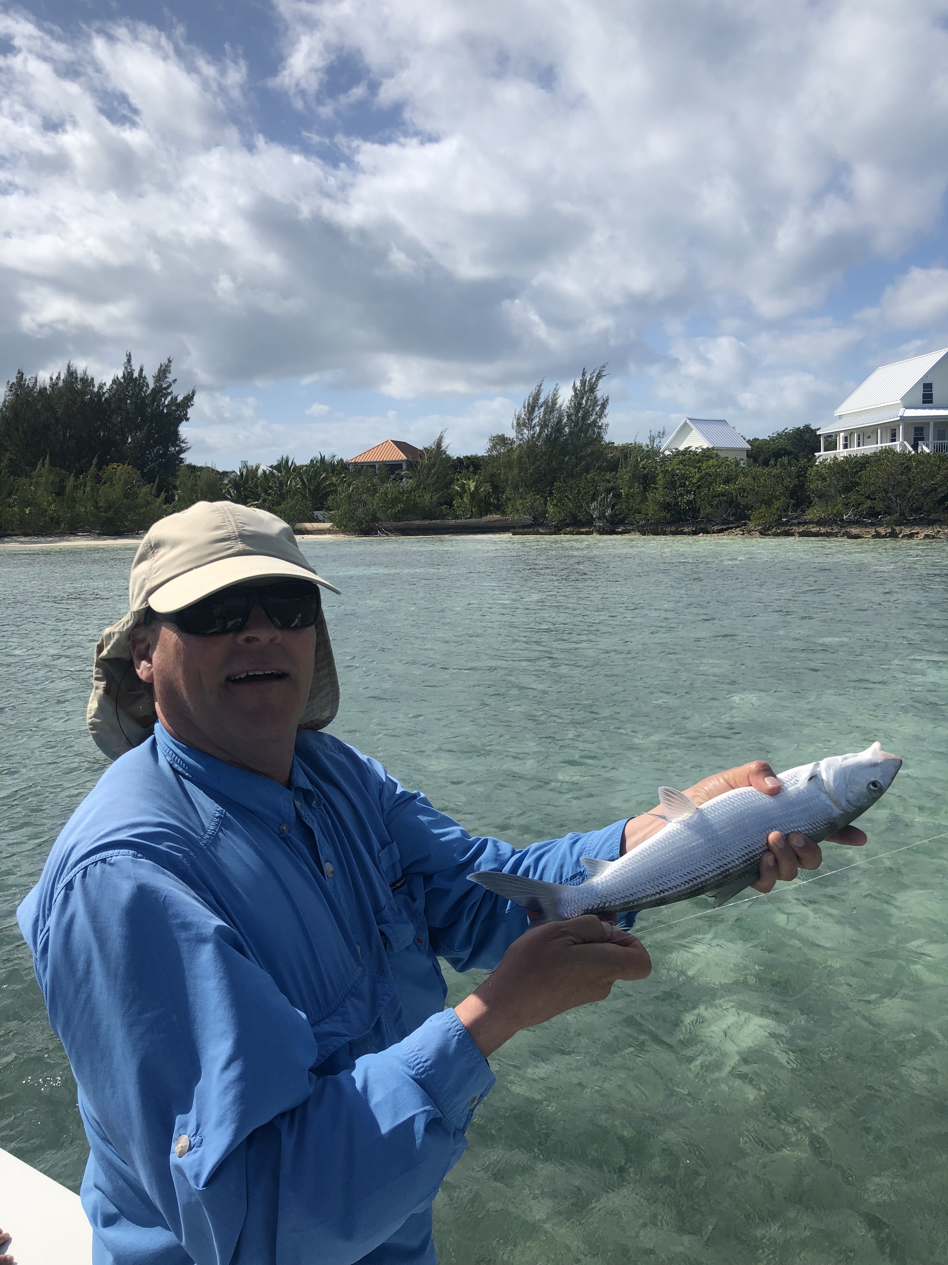 We did manage to catch Bonefish. They are prized for fighting above their weight and there was some question whether or not I would get spooled (where a fish takes all your line off the reel and breaks off) on one large one. For those of you who fly fish, Pete made a double haul 100 foot cast into a stiff quartering breeze right on the money and the fish missed. So he did it again and made the catch below. It was amazing.