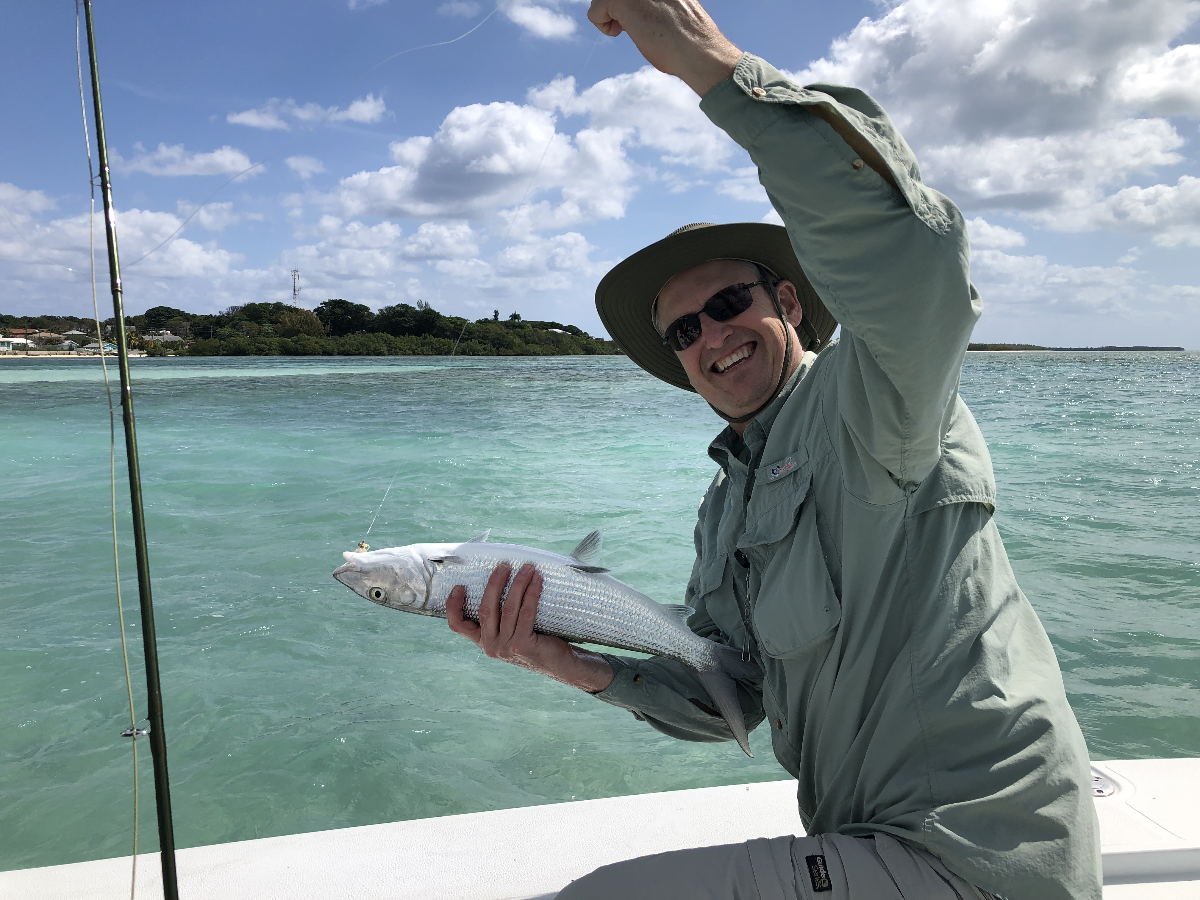 Pete introduced me to a new fishing style which I found addictive. There are large sandy flats around the caribbean islands where the sought after bonefish patrol like wary ghosts. You quietly walk the flat searching for their moving shadows.