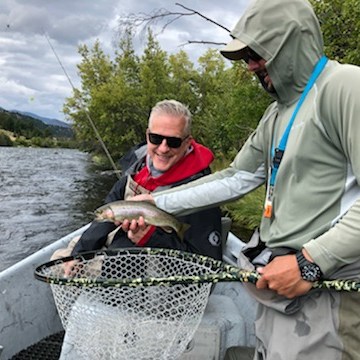 Our first Big Sky adventure was to the Gallitin National Forest. We were definitely not Sittin’ on the Dock of the Bay (Otis Redding) when we went fly fishing on the Madison River. Each couple had a boat and guide and competed to catch more fish than the master fisherman, Jim Dickens. At the end of the day, Jim got 20 plus while the rest of us caught 2-5. The winding river and vast vistas more than made up for our paltry catch. After a long day we worked up a “Big Sky” hunger and thirst and headed to the Gallatin Riverhouse Grill where Jim touted the best $7 Fried Chicken dinner we would ever have. Nobody got the chicken but Jim. We all Drank Another Beer (Luke Bryant) and became best friends with our waiter Sean.